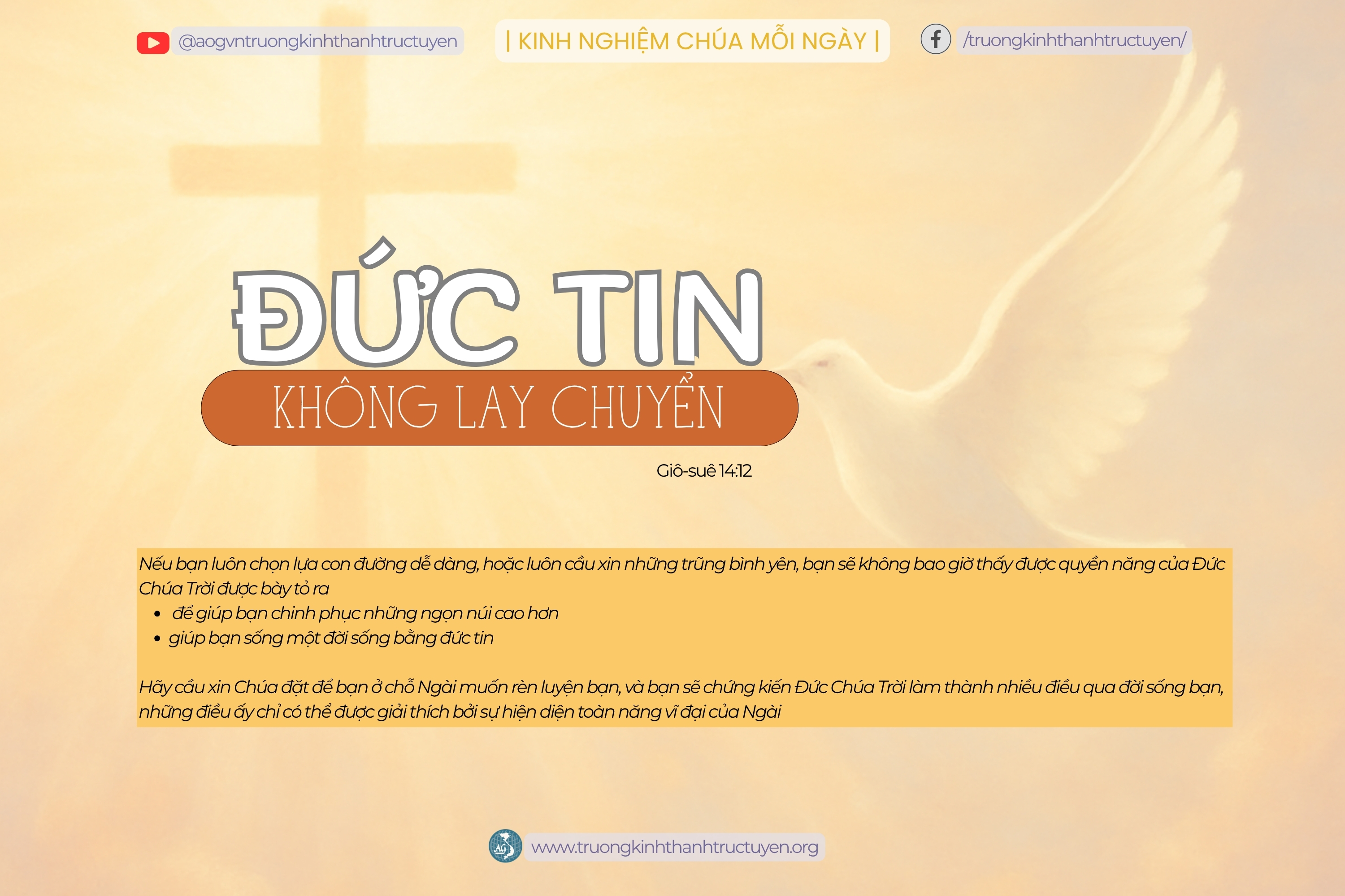 Chúng ta có thể bị cám dỗ để tin nơi những vị lãnh đạo mà Đức Chúa Trời đặt để hơn là tin nơi chính Ngài. Lịch sử dạy cho chúng ta một bài học rằng Đức Chúa Trời luôn có một Môi-se khác, Ê-li khác hoặc Đa-vít khác cũng thật tuyệt vời như chính những người tin kính ấy. Thường thường, người sau sẽ có được bội phần thần tính hơn người đi trước họ.